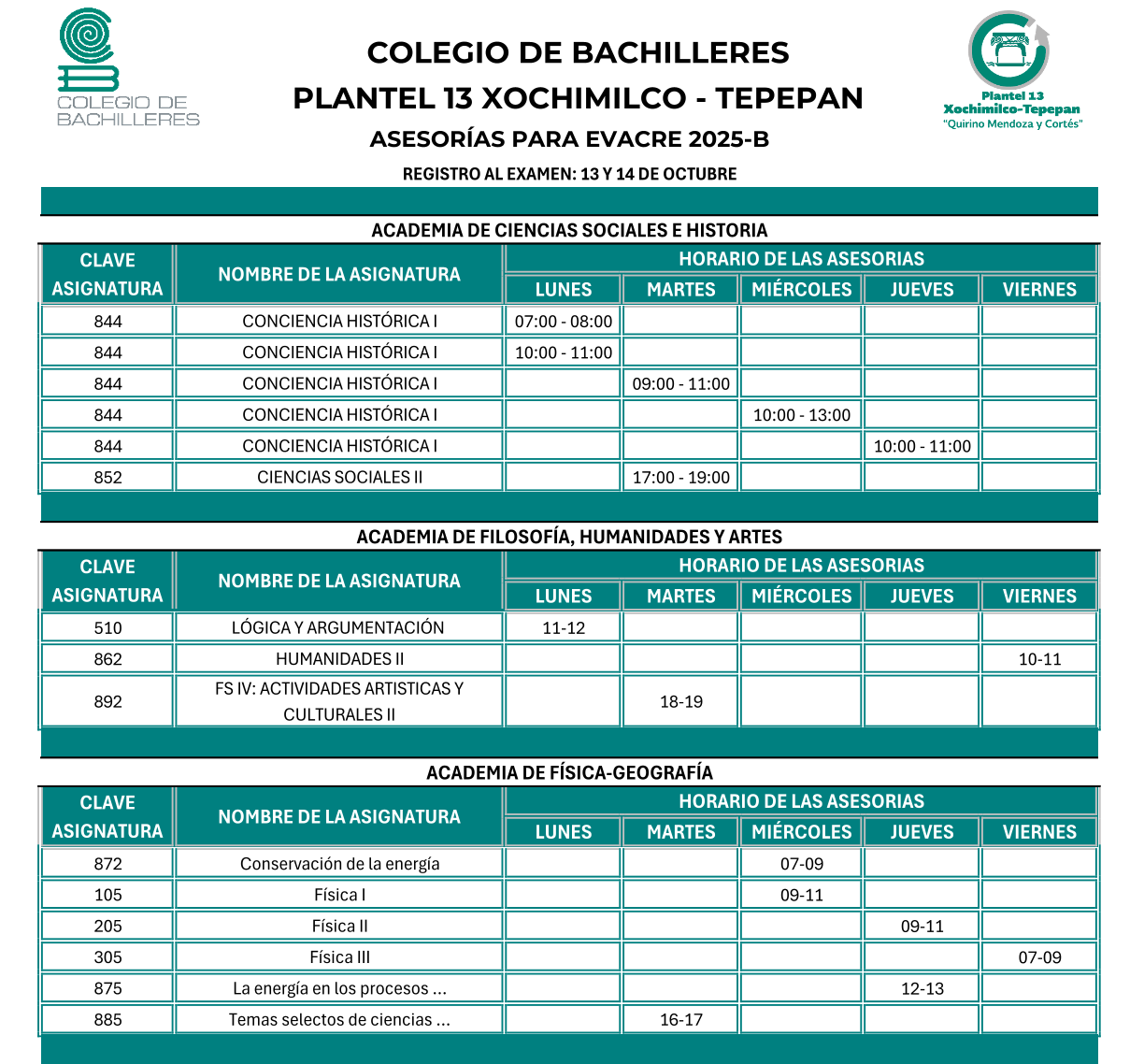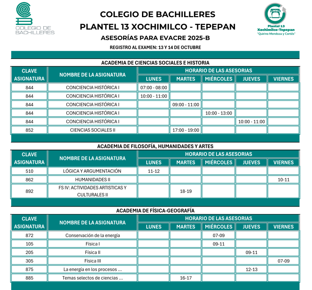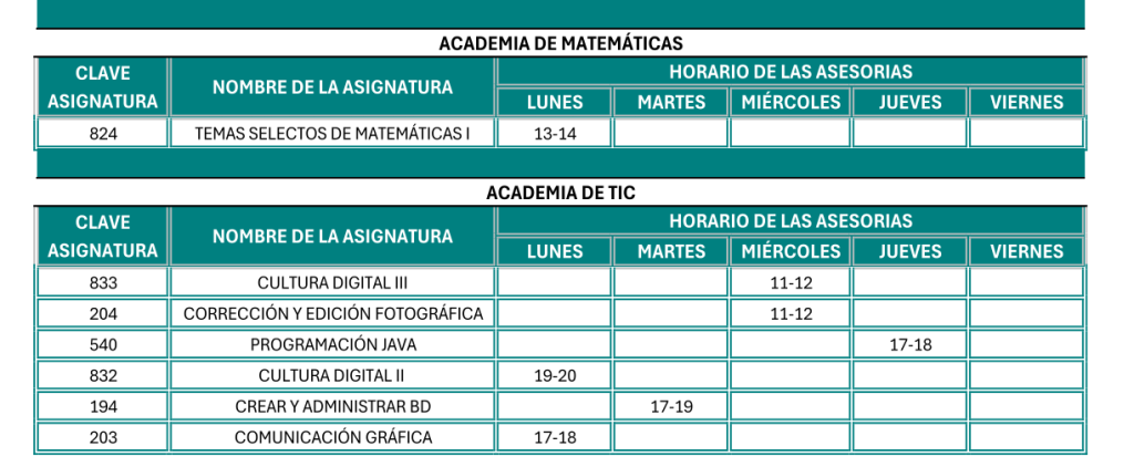 • Únicamente puedes registrarte a asesorías que se imparten en contraturno (para que no se vea afectado tu horario de clases).