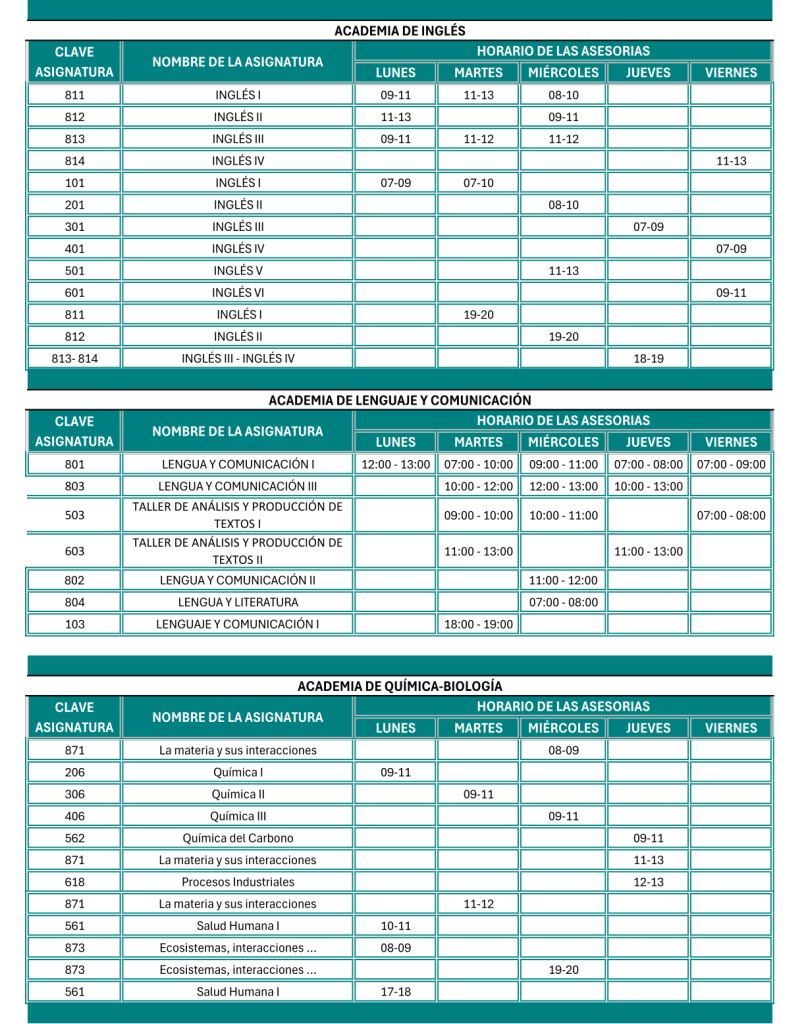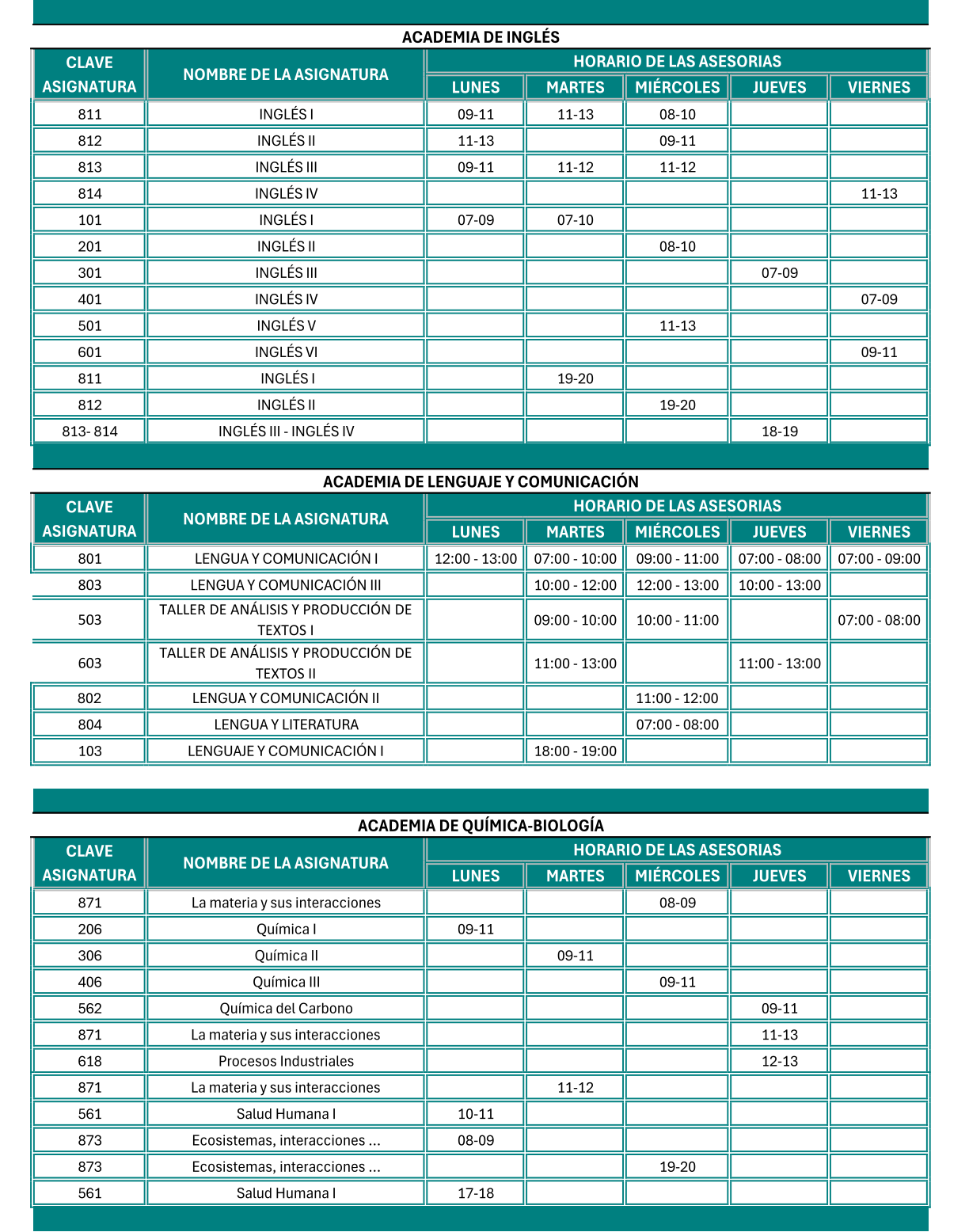 Las asesorías inician el lunes 8 de SEPTIEMBRE