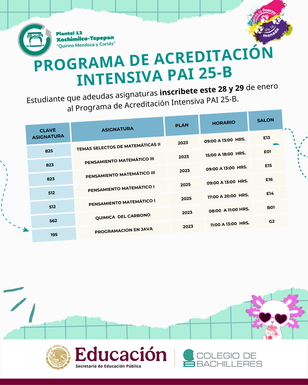 - EN ESTE MECANISMO SE APERTURAN TODAS LAS ASIGNATURAS DEL PLAN DE ESTUDIOS VIGENTE.
