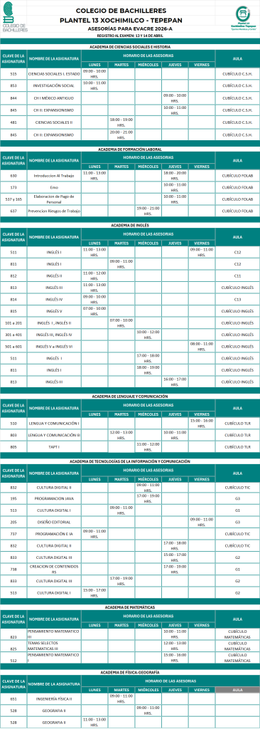 - Únicamente puedes registrarte a asesorías que se imparten en contraturno (para que no se vea afectado tu horario de clases).